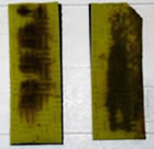 ひかり菌の周りでは茶色が薄くなっており、ひかり菌がエロモナス菌を押しのけ増殖している事が分かります。(中央の紙はひかり菌を染みこませていません)